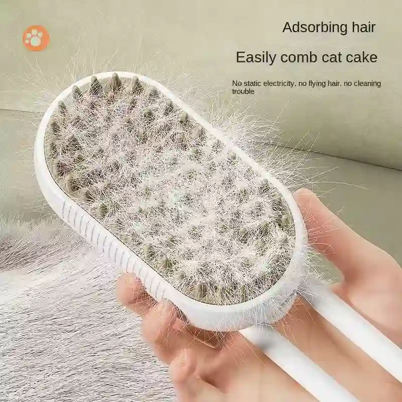 3-in-1 Pet Grooming Brush with Spray built in spray and steam function, perfect for both cats and dogs. Ideal for detangling, reducing shedding, and giving your pet a relaxing massage.